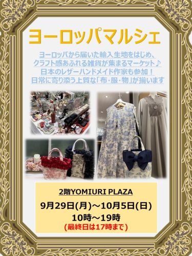 YOMIURI PLAZA催事のお知らせ~ヨーロッパマルシェ~