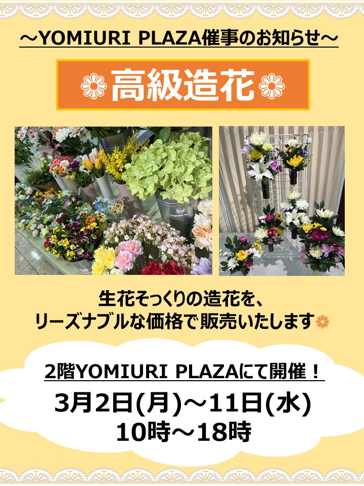 YOMIURI PLAZA催事のお知らせ~高級造花~